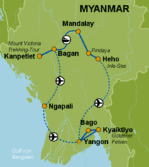 Ursprünglich hatte ich vor, Myanmar gleich im Anschluss an Vietnam und Laos zu bereisen, aber die Entfernungen wurden zu groß und die Zeit zu knapp. Diesen Teil werde ich jetzt vorziehen und am 29. Januar nach Rangun fliegen. Von dort aus soll es 3 Wochen auf eigene Faust durchs Land gehen. Zum Goldenen Felsen von Kyaiktiyo,