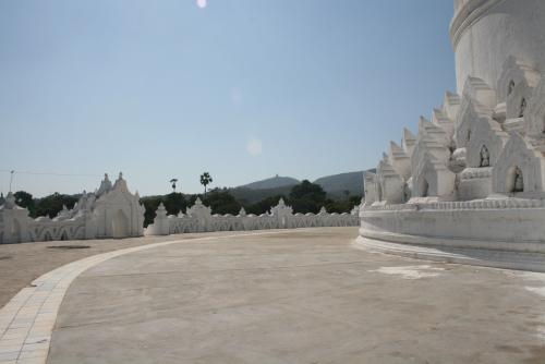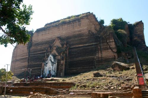Heute geht es von Mandalay aus über den Fluß nach Mingun. Dort sollte vor knapp 200 Jahren nach dem Willen von König Bo-daw-hpaya die größte Pagode der Welt entstehen. Dem größenwahnsinnigen und kriegerischen Herrscher war es aber nicht vergönnt, dies zu erleben. Nach seinem Tod ließen die 50000 aus Arakan verschleppten Zwangsarbeiter einen gigantischen, rund 50m hohen Ziegelsockel zurück.
