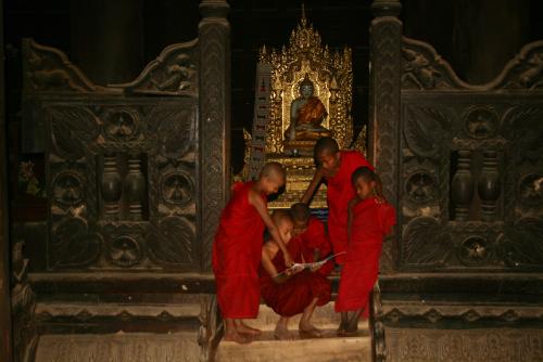 Auf der anderen Seite kann man sich mit einer Pferdekutsche zum alten Kloster fahren lassen und mit etwas Glück junge Mönche beim Studium der Lehre Buddhas beobachten.