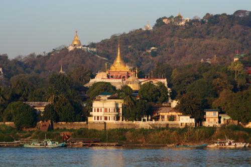 Kurz nach Sonnenaufgang bekomme ich nochmals einen Blick auf die Hügel von Sagaing, die mich zwei Tage zuvor ins Schwitzen gebracht haben.
