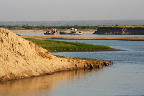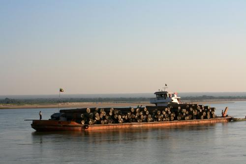 Viel zu sehen gibt es nicht. Ab und zu kommen mit dicken Baumstämmen oder mit Reissäcken beladene Frachter vorbei. Das Leben am Ufer ist meist zu weit weg, um mit dem Tele etwas vernünftiges einzufangen.