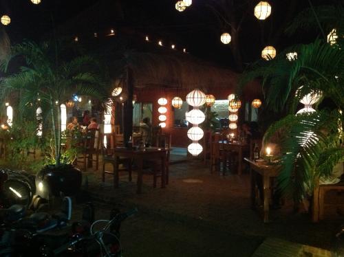Ich nehme das erstbeste Taxi - das heißt ich folge dem Fahrer, der "Taxi - Taxi" gerufen hat. Das Taxi entpuppt sich als klapprige Fahrrad-Rikscha. Die Wege sind sandig. Der Bursche muss mächtig strampeln. Das Hotel ist knapp 2km entfernt. Es ist brandneu und liegt direkt neben der "Restaurant-Road" mit vielen kleinen Shops und Kneipen. Hier gefällt es mir...