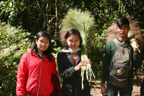 Ab jetzt schaue ich nur noch auf die nächsten paar Meter vor meiner Nase. Der Weg soll ja angeblich das Ziel sein. Von dem sind wir aber noch gut 2 Stunden Fußmarsch entfernt. Jedenfalls vom Ziel für Tag 1 der Tour. Ab und zu kommen uns Einheimische entgegen, die wesentlich besser zu Fuß sind und Gemüse oder Holz nach Hause schleppen.