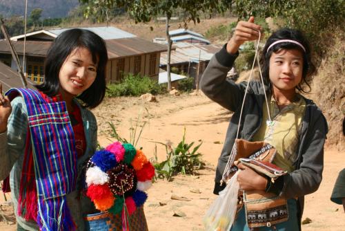 Jetzt geht es zunächst zügig bergab - dem ersten Dorf entgegen. Mir schwant nichts Gutes. Denn dahinter lauert die nächste Bergkette. Die müssen wir vor dem Abend hinter uns lassen. Das Dorf besteht überwiegend aus festen Häusern und bietet wenig Futter für die Kamera. Den Mädchen am Wegrand will ich nichts abkaufen. Mein Rucksack ist nach 5 Stunden auch so schon schwer genug. Außerdem habe ich keine Zeit zum Feilschen :-).
